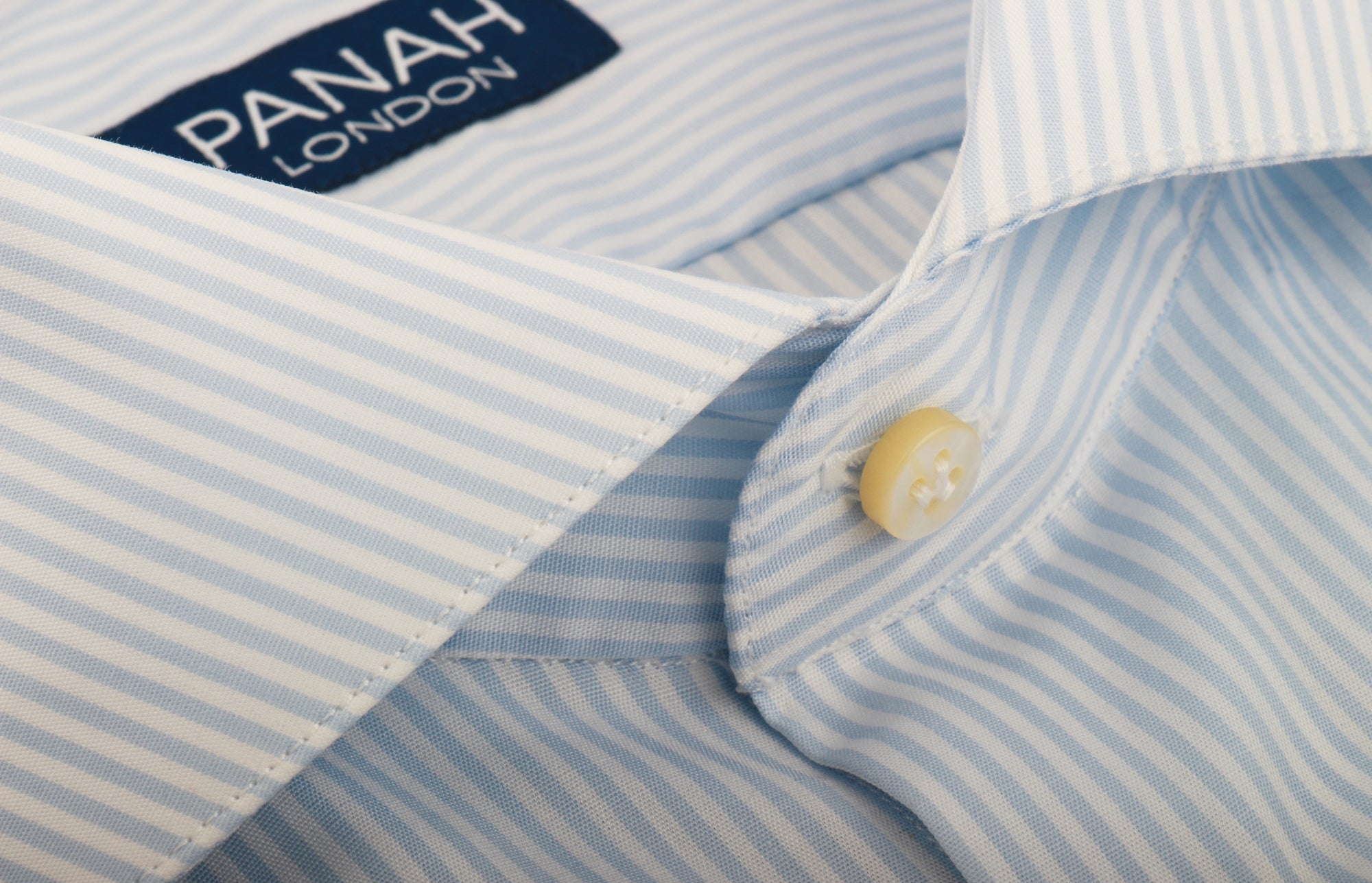 Panah luxury fabric shirts are handmade in Italy by skilled tailors with over 25 years experience. Inspired by Sicilian tailoring approximately 60 different manual processes eventually end up together for the creation of final product. Panah sky stripe fabric has been sourced from Monti Mills Italy.